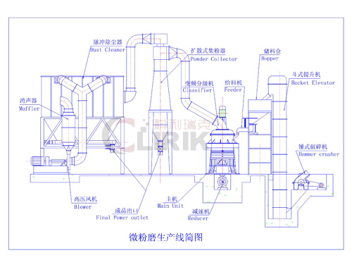 滑石磨粉機的工作原理: 大塊物料經錘式破碎機破碎成小顆粒后由提升機送入儲料倉,再經過震動給料機和傾斜的進料管,將物料均勻地送到轉盤的上部的散料盤上。 物料在離心力的作用下散向圓周邊,并落入磨環的滾道內被環輥沖擊、滾輾、研磨,經過三層環道的加工變成粉體,高壓風機通過抽吸作用將外部空氣吸入機內,并將粉碎后的物料帶入選粉機內。 滑石磨粉機(超細磨粉機)選粉機內旋轉的葉輪使粗物料回落重磨,符合要求的細粉則隨氣流進入旋風集粉器并由其下部的卸料閥排出即為成品,而帶有少量細粉塵的氣流則經過脈沖除塵器凈化后通過風機和消聲器排出。 滑石磨粉機(超細磨粉機)的性能參數: 型號 HGM8021 HGM9024 HGM10036 HGM10027 平均工作直徑mm 800 900 1000 1000 環道數量/層 3 3 3 4 磨輥數量/個 21 24 27 36 主軸轉速/r.p.min 230 200 180 180 入料粒度 /mm ≤20 ≤20 ≤20 ≤20 成品粒度范圍/μm 5-47 5-47 5-47 5-47 成品產量 t/h 0.4-4.5 0.4-5.5 0.6-6.5 0.7-7.5 安裝外形長x寬x高 LXWXH /m 13.9x4x6.2 14.7x4.8x7.2 18x4.6x8.6 18x4.6x8.6 整機容量/Kw 145 192 263 263